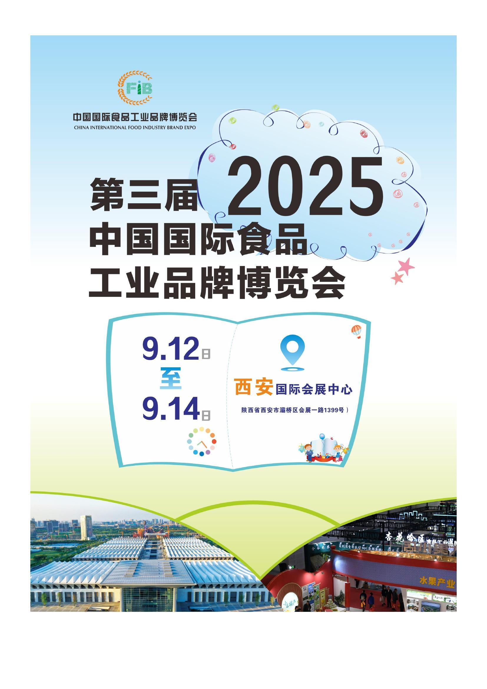 2025第三届中国国际食品工业品牌博览会将于9月12-14日在西安国际会展中心举办。